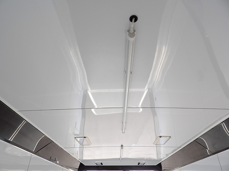 • Interior Walls/Ceiling: White Aluminum Wall Panels Over 3/8" Engineered Wood & White Aluminum Ceiling Panels