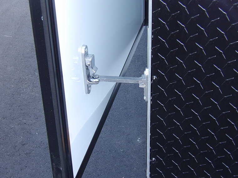 • Side Door 30” Curbside RV w/ Flush Lock & Aluminum Holdback (Black Frame)